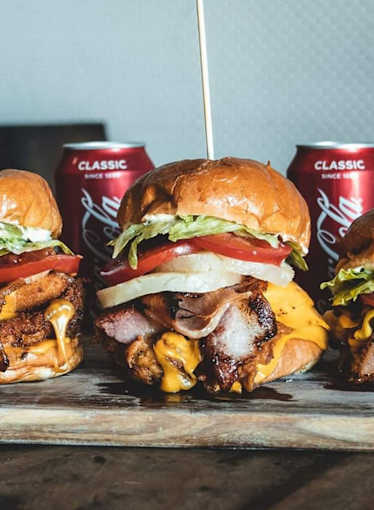 100% Real beef patty with crispy bacon, American cheese, grilled onion, lettuce, tomato, mayo, ketchup, and mustard.